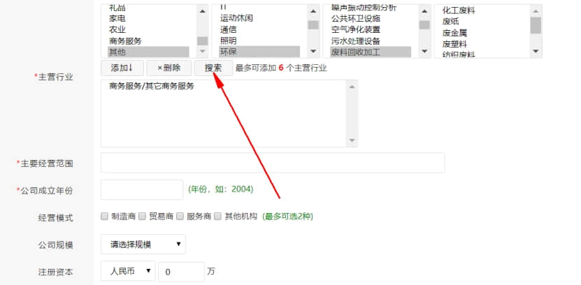 主營行業,如果找不到,可以選擇搜索,輸入自己的行業,即可搜索出相關行業,如果搜索不出,可以換關鍵詞來進行搜索.